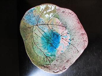 ACTUALITE 2025 POUR LA CERAMIQUE Potière depuis 1985, j’ai fabriqué des objets à usage alimentaire traditionnels. Aujourd’hui, je crée des « pièces d’Art » en terre cuite et faïence émaillée par superpositions d’émail. Le thème Végétal est omniprésent sur certaines pièces que je travaille avec des empreintes végétales. La NATURE est mon sujets essentiel d’inspiration. Je fabrique aussi des objets contenants pour des présentations florales de divers styles qui accompagnent ponctuellement mes expositions.